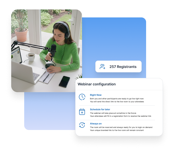 Your best webinar shouldn’t depend on your calendar. Record your presentation once, then use EverWebinar to deliver it automatically on a schedule or Just-in-Time. Set chat messages, polls, handouts, and timed offers to appear at the exact moments you choose. Viewers get a guided experience that feels live. You get your time back.